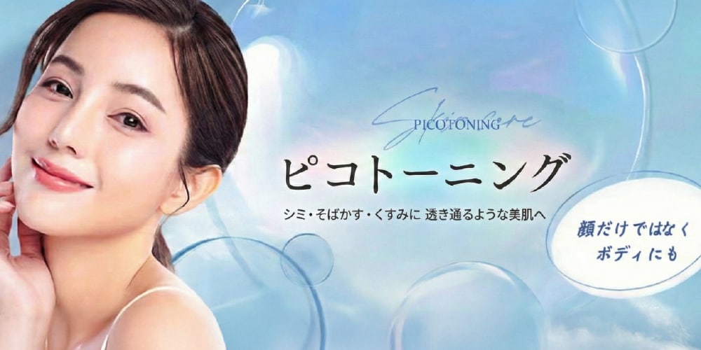 【ピコトーニング】は、“ピコ秒”という超短時間で照射するFDA認可の最新レーザー。従来より弱いエネルギーで色素をより細かく砕くため、**シミ・くすみ・肝斑**まで幅広くアプローチできます💎