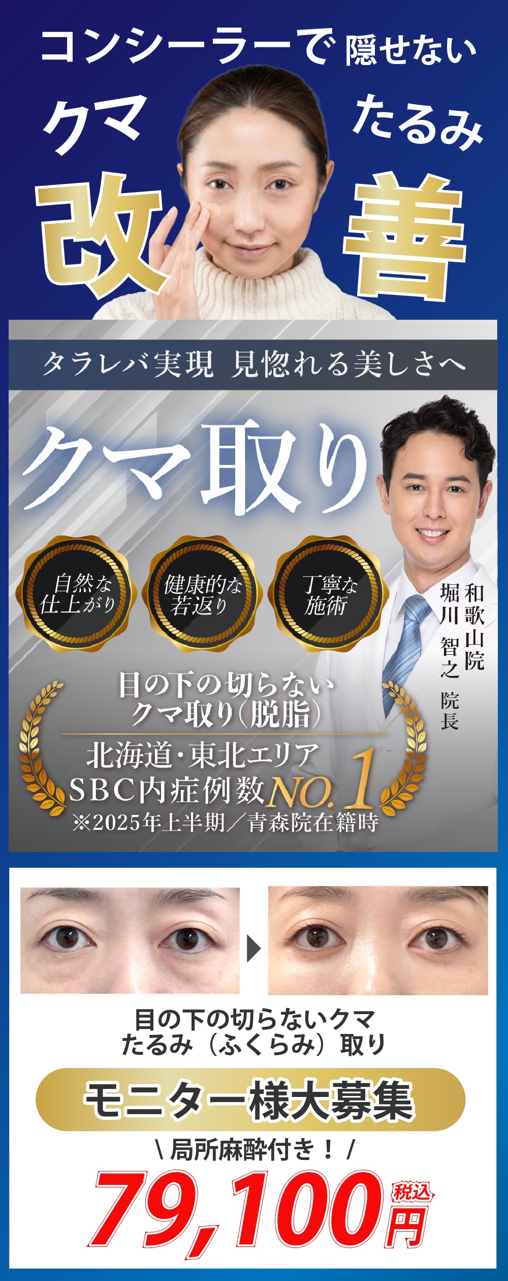 湘南美容クリニック和歌山院では、二重整形や脂肪吸引注射、クマ取りをはじめ、医療脱毛や美肌・ニキビ治療など美容皮膚科の施術も幅広く取り扱っております。