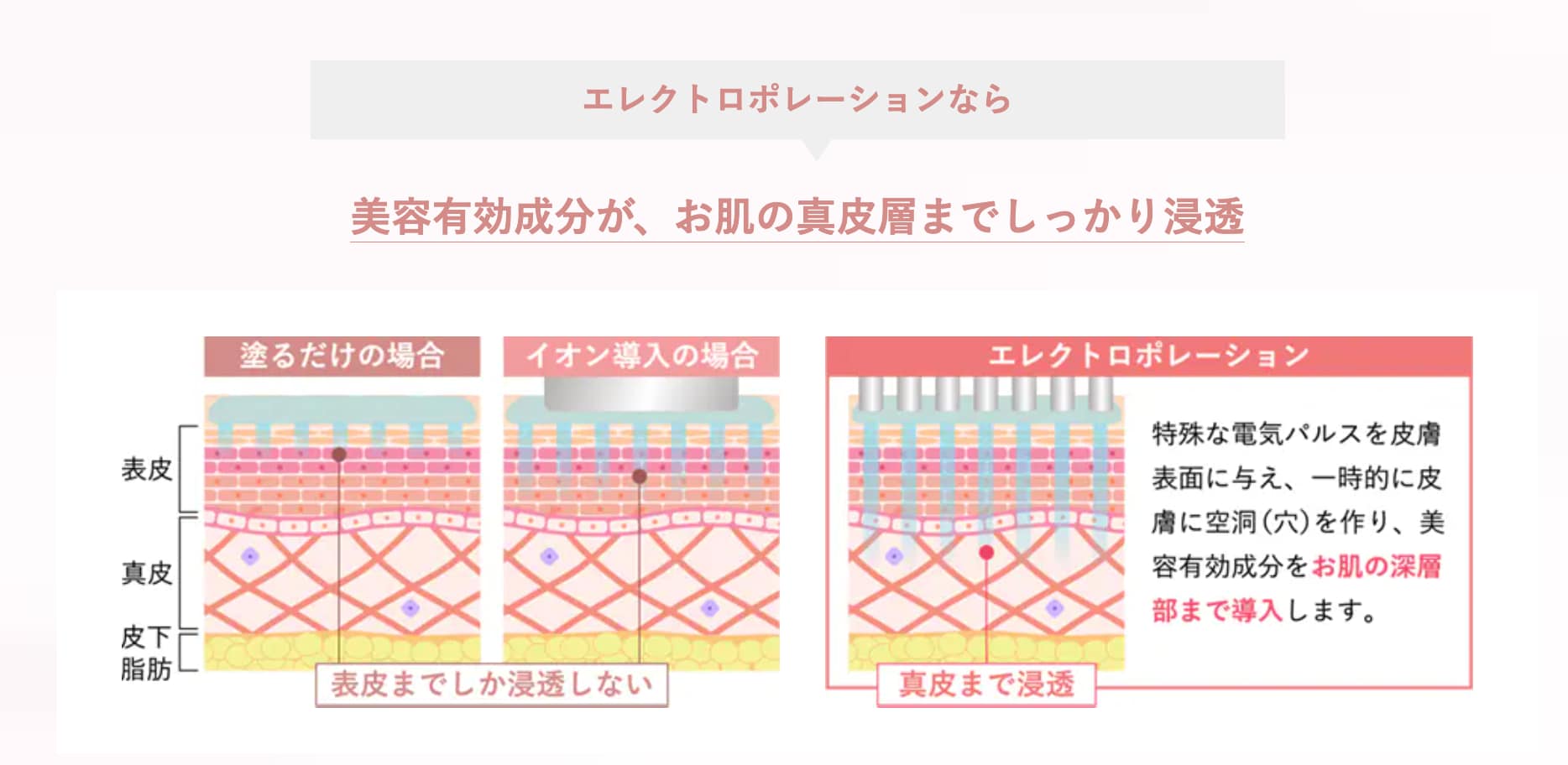 肌には皮膚を守るバリア機能という性質があり、日頃の化粧水や美容液をお顔に塗るだけのお手入れでは肌の奥の方まで美容有効成分を浸透させる事ができません。