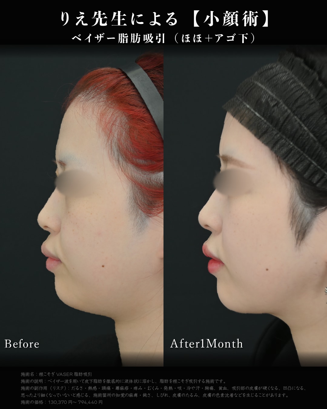 除去することで、たるみによりお顔の下の位置にあったボリュームが、本来の頬の位置に戻り、若々しくスッキリした小顔フェイスになれます。