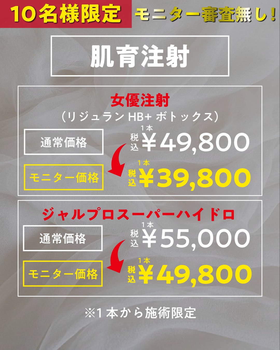 女優注射は、リジュランHBで肌そのものを再生させ、ボトックスで細かいシワを改善・毛穴を引き締める治療です。