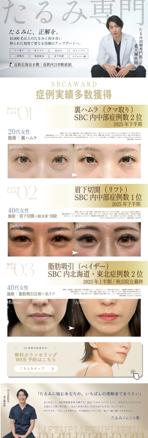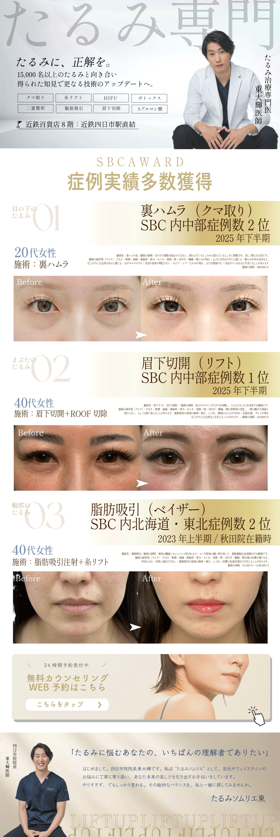 【たるみ治療専門医】Dr.東によるアンチエイジングお届け。中部3位の若返り〈目元〉が四日市で受けられる!〈2025年下半期SBC内症例数〉