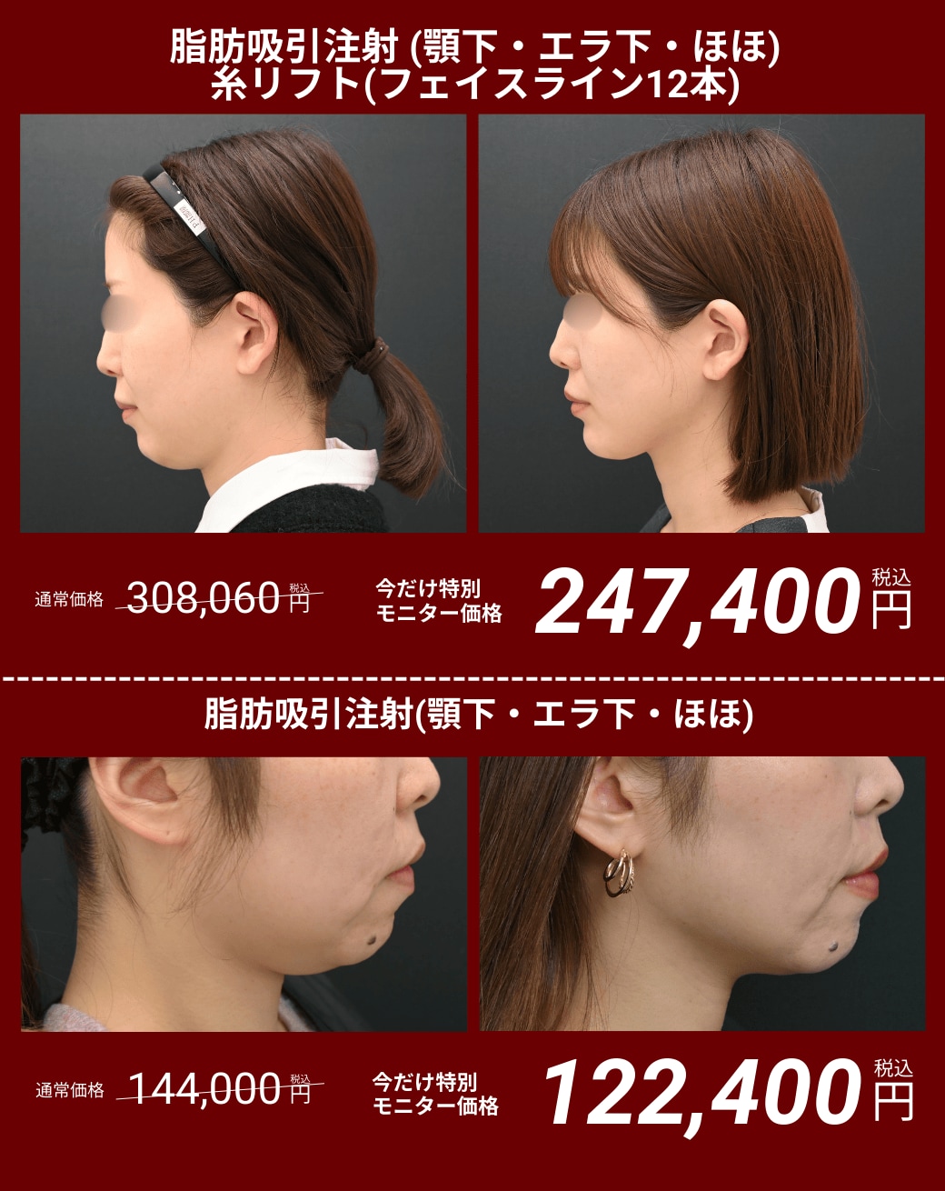 痩身、小顔治療、二重術、クマ取りなど幅広い施術を取り扱っております。