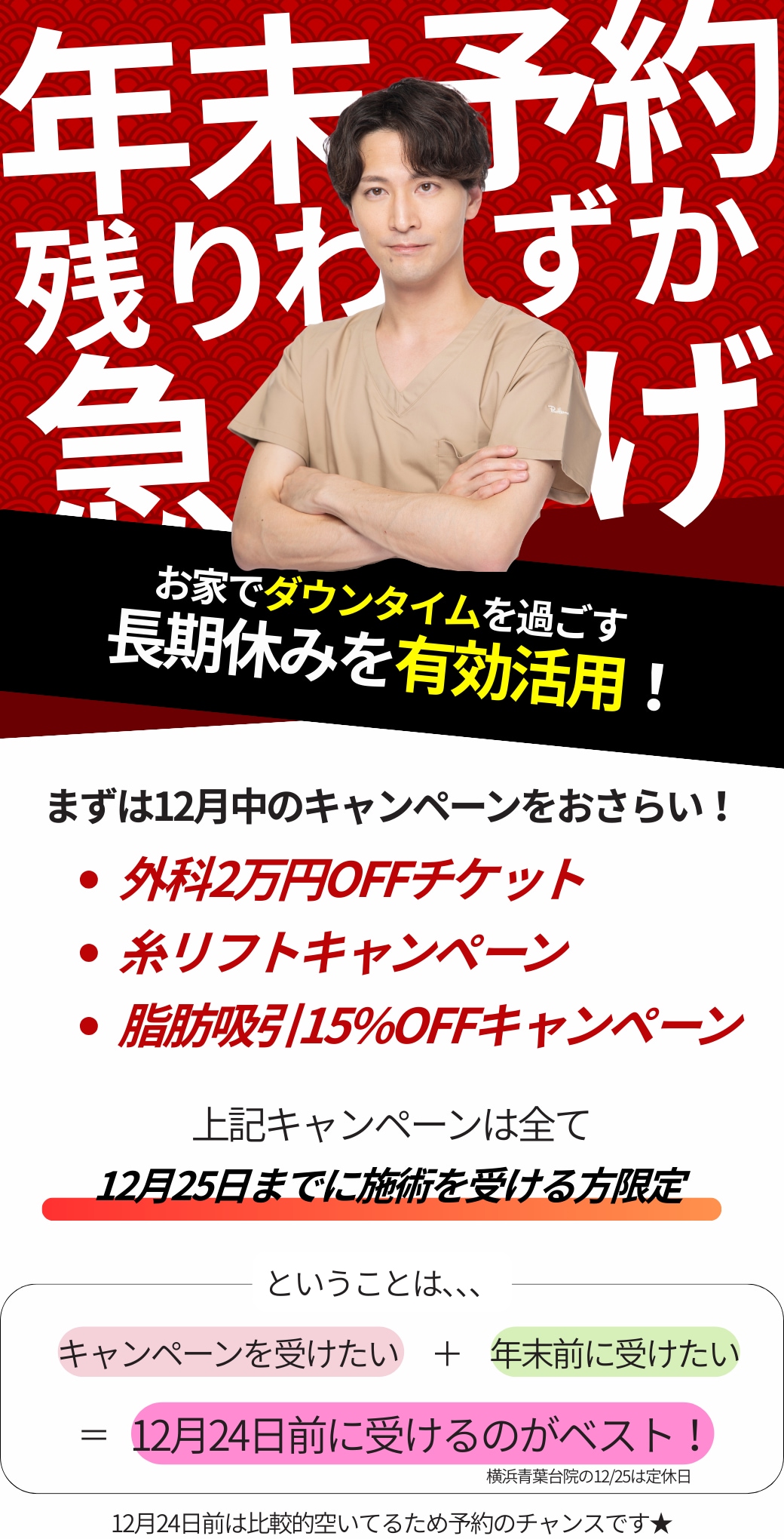 クリニック案内 神奈川県のクリニック 湘南美容クリニック 横浜青葉台院 年末予約受付中📣🔥もうすでに残り1枠の日も⁉️ご予約急げっ‼️