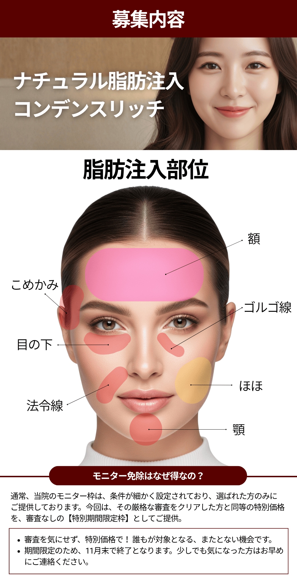 【横浜青葉台院限定】モニター審査不要⁉️脂肪注入モニター大募集🔥