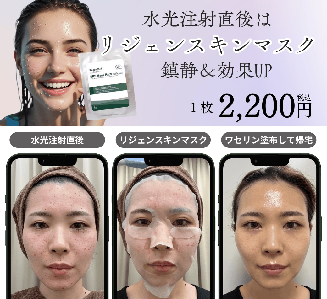 そんな施術直後のお肌をやさしく鎮めてくれるのが、有料オプションの「リジェンスキンマスク」です。