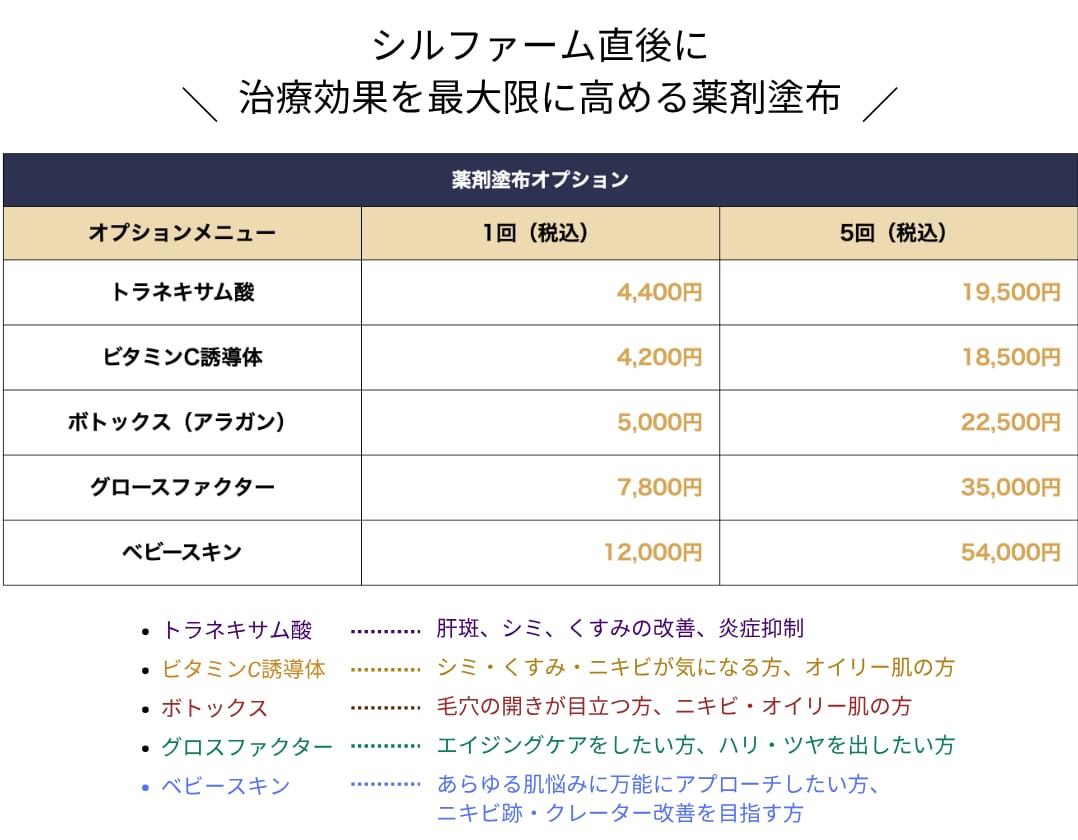 そのため、ただ塗るだけのケアよりも何十倍も高い効果を発揮し、シルファームXのRF治療による「肌再生」と薬剤の「有効成分」が協力して相乗効果を生み出すのでシルファームを受ける方にとてもおすすめです🔥