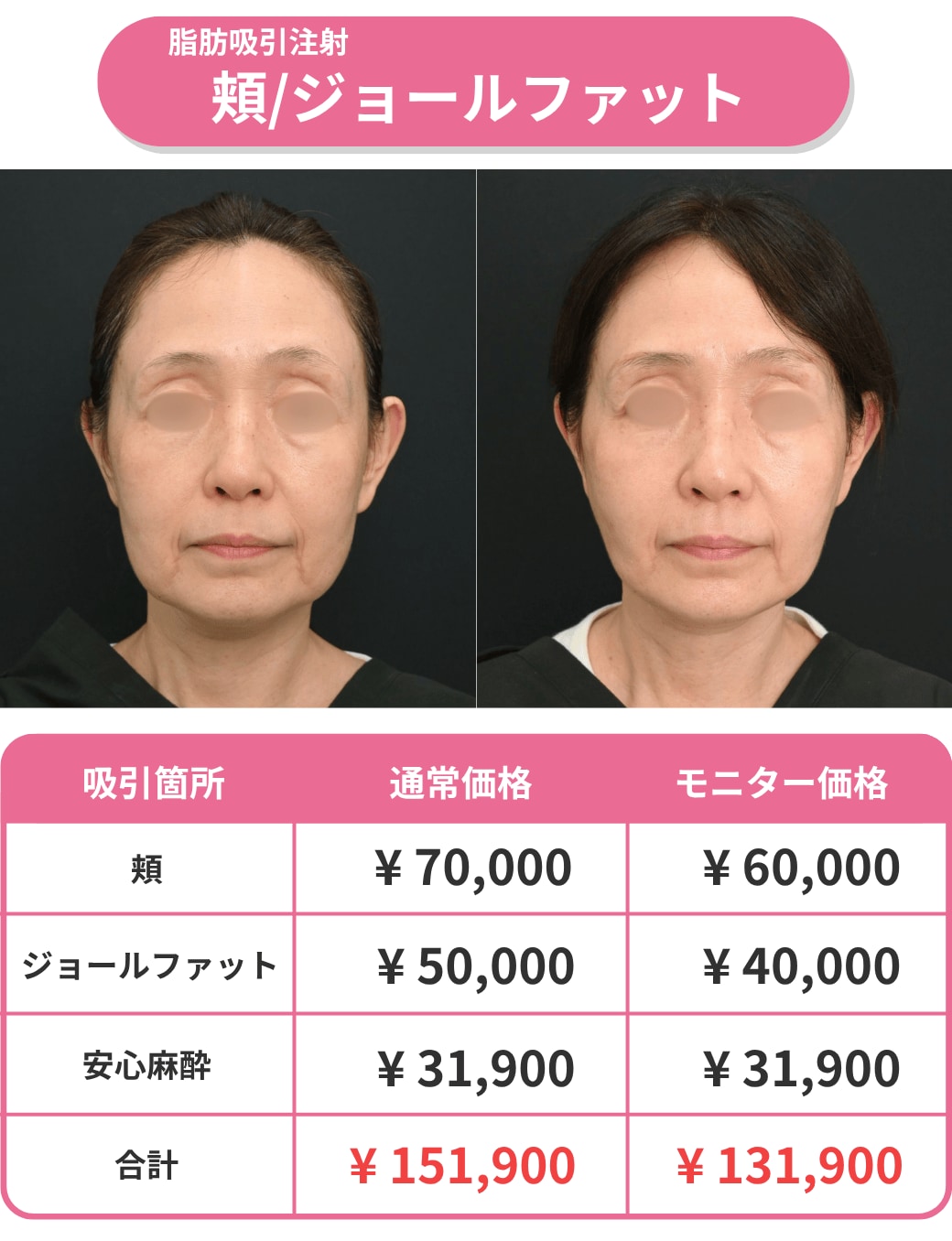 お体の脂肪量が多い方や広範囲の脂肪除去を希望される場合は、脂肪吸引(美ボディ)をおすすめすることもありますが、基本的に小顔や若返りを目指す場合は脂肪吸引注射が最適です。