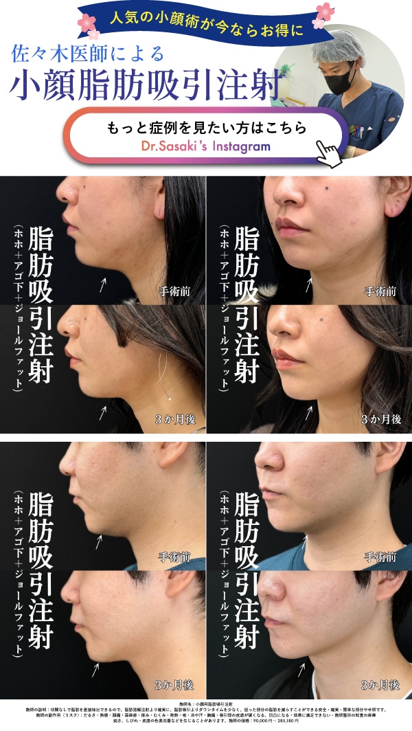 【4/15まで】今だけ10%OFF‼️脂肪吸引注射で憧れの小顔に✨