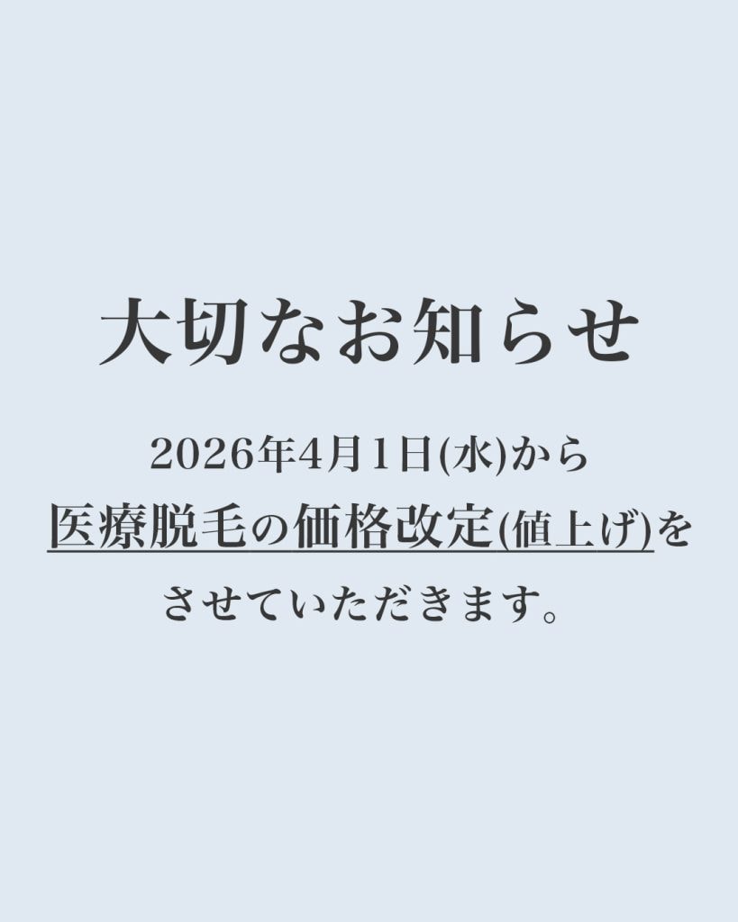 誠に心苦しい決断ではございますが、 2026年4月1日より男性、女性共に医療脱毛の価格を改定させていただくこととなりました。