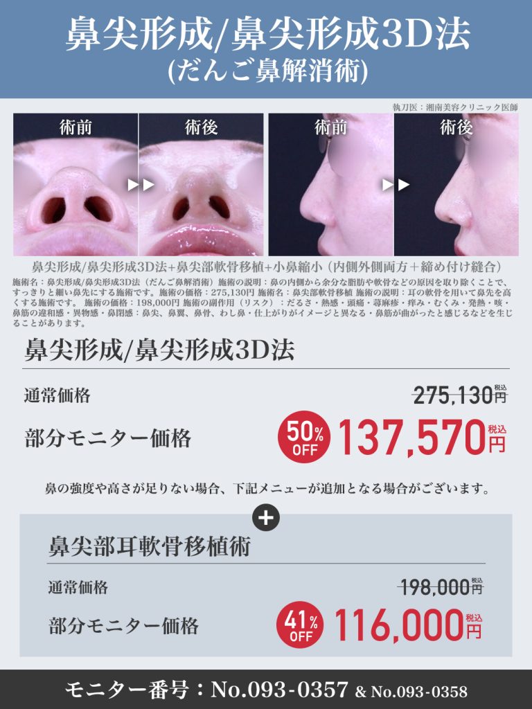すっきりと細い鼻先に!【鼻尖形成/鼻尖形成3D法(だんご鼻解消術)】