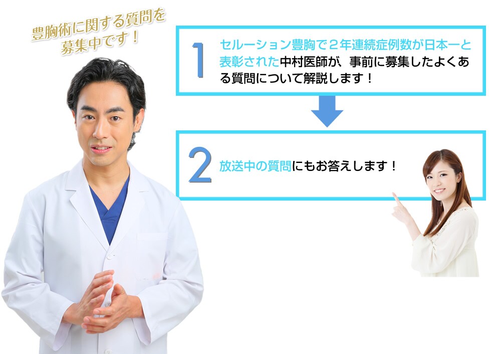 - 参加ご希望の方は当日、お手持ちのスマートフォンやパソコンから中村大輔医師のInstagramアカウントまたは、新宿本院のInstagramアカウントをご確認の上、ライブ動画を視聴してください。(事前の参加お申込みは不要です)