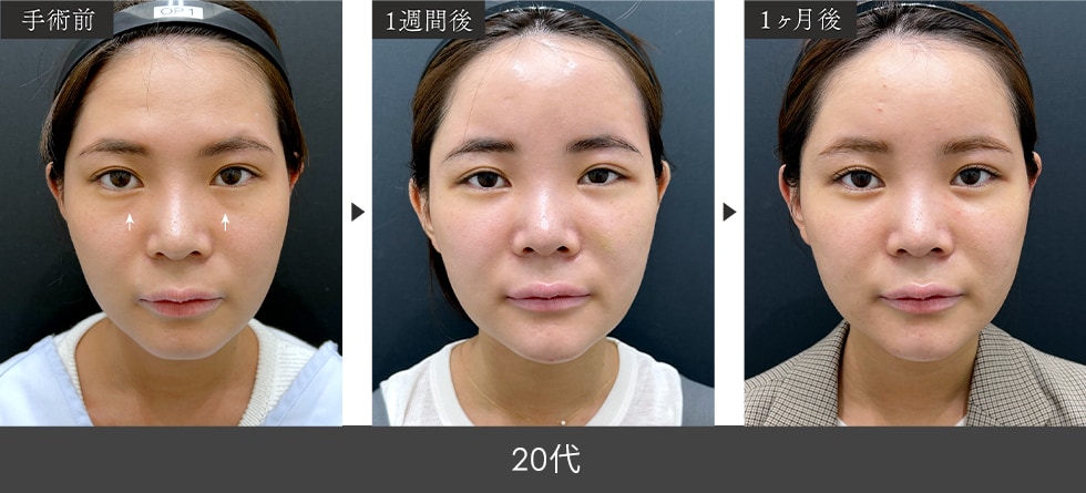膨らみをとりつつ、凹んだ部分には脂肪注入することで目の下に高さが出て、ふっくらと若々しい目元になります。