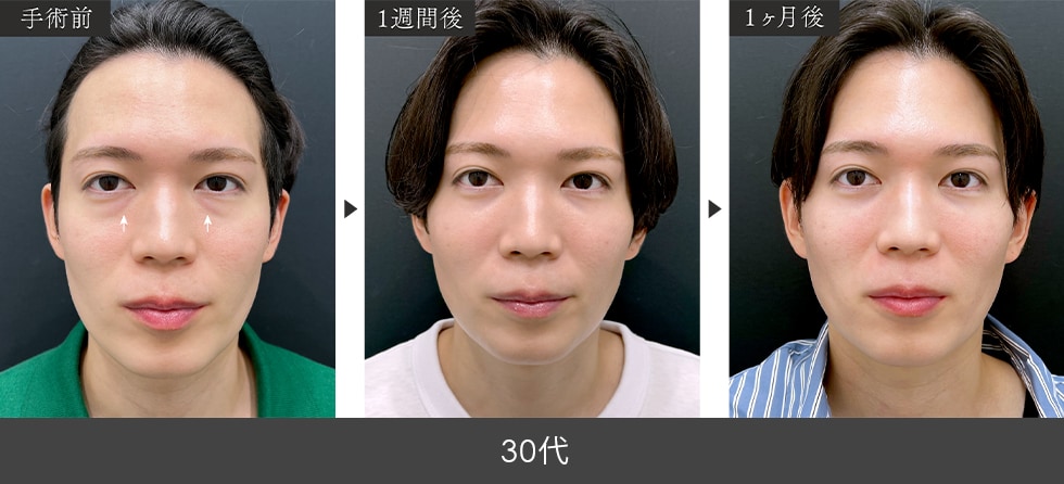 目の下の脂肪を取るのではなく、膨らんでいるところから窪んでいるところに移動させ、美しく整える方法です。