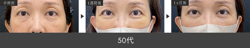 目の下の脂肪による膨らみと凹み、皮膚のたるみを同時に改善出来ます。