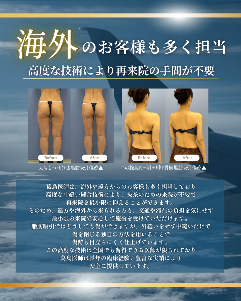 脂肪吸引は、高度な技術と医師の経験が必要とされる施術になりますがとてもやりがいを感じております。