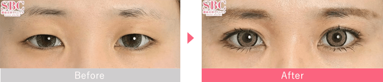 眼瞼下垂は、まぶたの開きが弱いまたは悪い状態のことを指します。眼瞼下垂術は、重いまぶたを引き上げる施術です。目の開きが悪いと、いくら二重ラインを作っても目ヂカラは上がりません。全切開法二重術と併用することで、ぱっちりとした目元を実現できます。