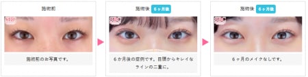 施術6ヵ月後の写真(右)を見ると、目頭からキレイなラインの二重になっていることが分かります。