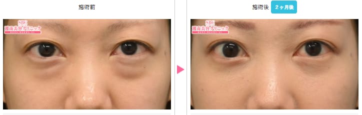 施術の説明:お顔表面を切らずに目の下の余分な脂肪を取り除き、ハリのある生き生きとした目元にする施術です。