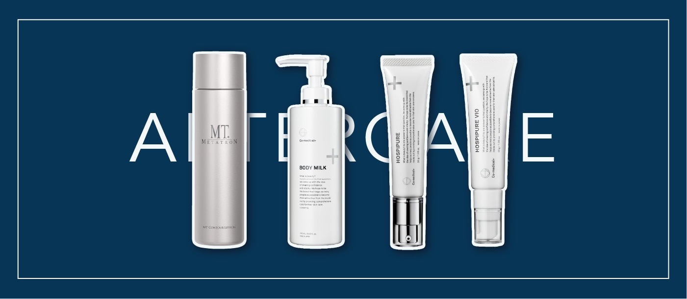 医療脱毛後の肌は、レーザーの熱によって一時的にとてもデリケートな状態になっています。湘南美容皮フ科鹿児島院では、毛をなくすだけでなく「施術後の肌をやさしくいたわる」アフターケア商品も取り扱っております。