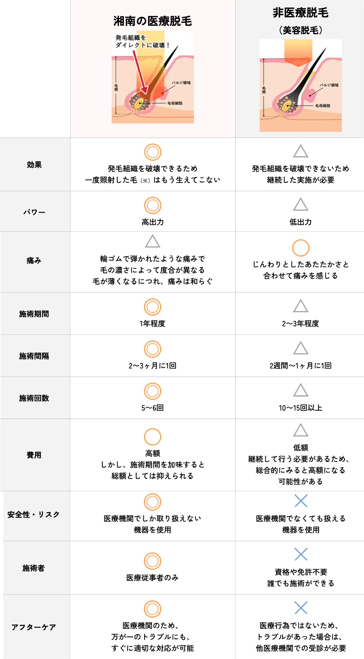 ✦医療脱毛と非医療脱毛の違い
