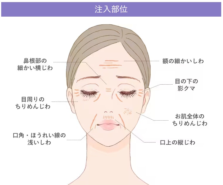 額、鼻根、ほうれい線や口上のしわなどに注入することも・・・💉