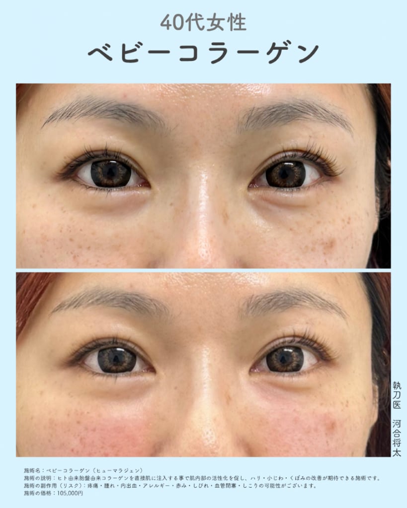 ベビーコラーゲン1本を目の下に注入させていただきました。