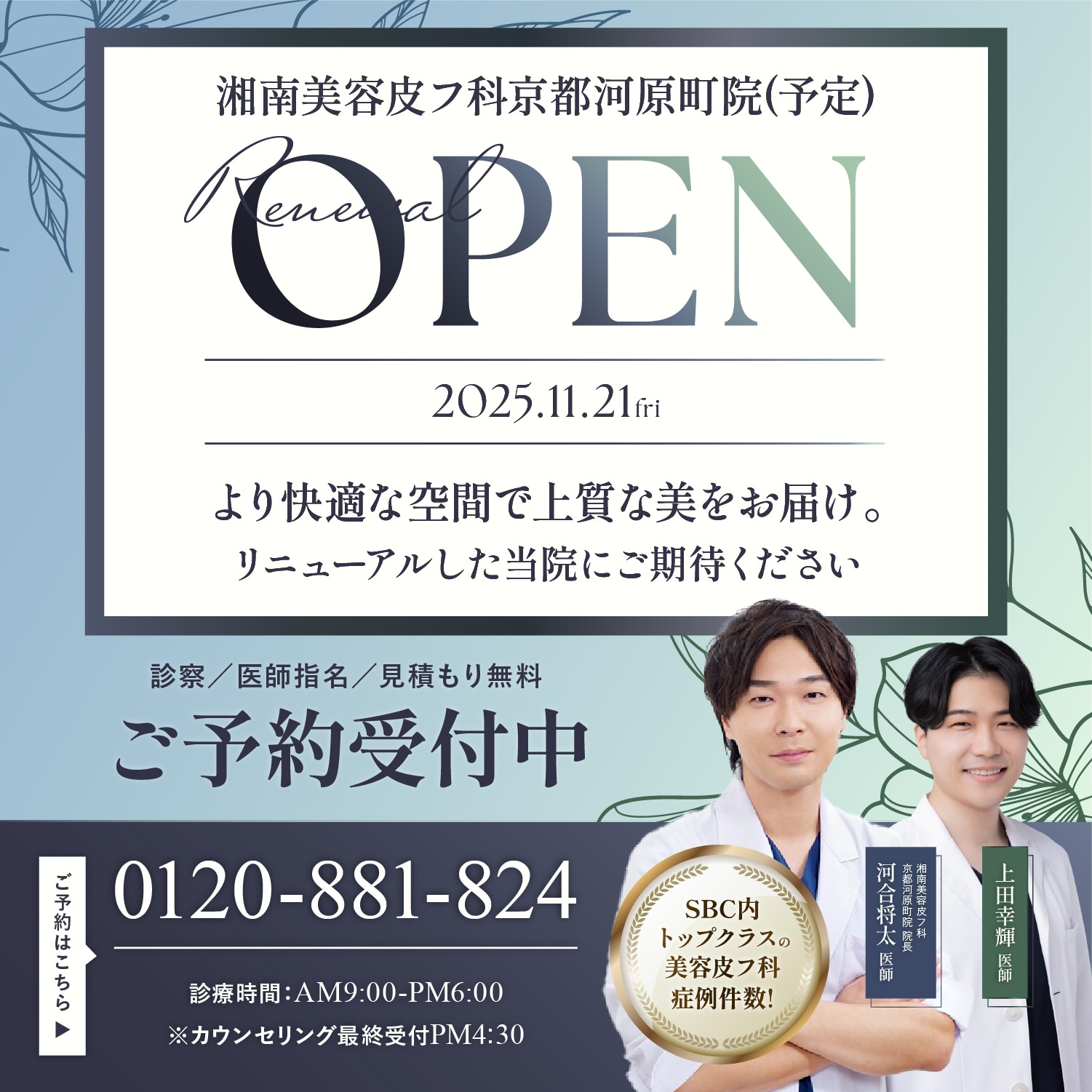 ✨11/21 移転・リニューアルオープン✨湘南美容皮フ科京都河原町院として生まれ変わります!