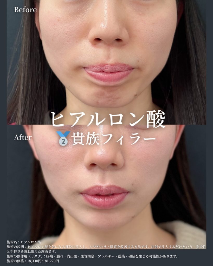 Point:ほうれい線の根本部分を貴族部と呼び、そこを埋めることで自然な若返りにつながります。