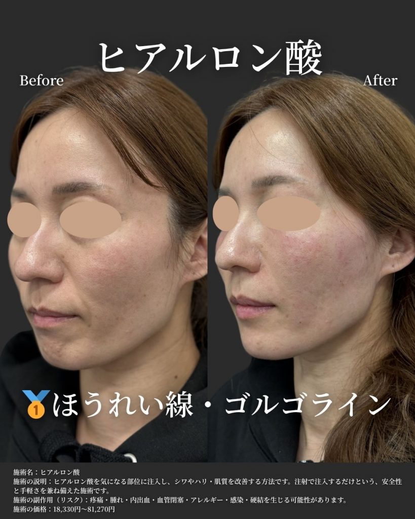 - 即効性の効果実感: 注入直後からシワの溝が埋まり、変化を実感いただけます。