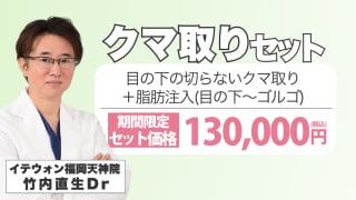 クマ取りと脂肪注入のキャンペーンが登場!セット価格でお得に受けられるチャンス!目の下のクマが気になる・老け顔・疲れ顔にお悩みの方には超お得な内容です!
