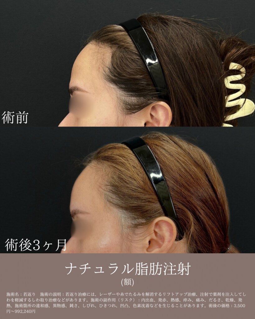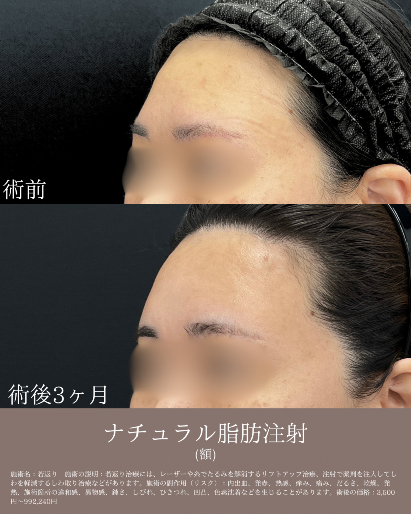 - ナチュラル脂肪注入(額):118,400円+麻酔代19,800円=138,200円