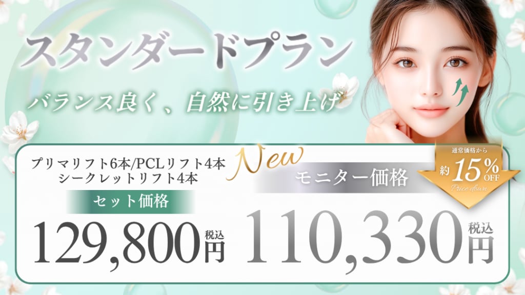 【特徴】引き上げ力と持続性をバランス良く組み合わせた、当クリニック人気No.1プラン🥇