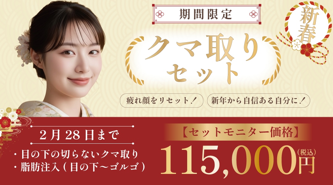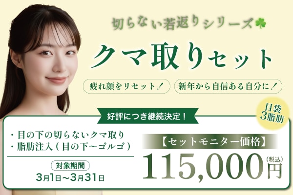【目の下の切らないクマ取り】+【脂肪注入(目の下ゴルゴ)】をセットで受けると