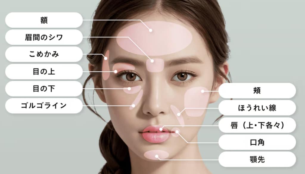 ナチュラル脂肪注射(脂肪注入)は、額からアゴ先まで顔全体に対して効果的な施術です。