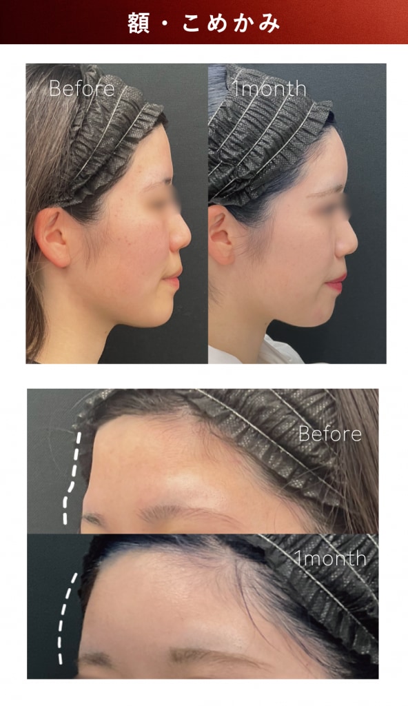 額・こめかみの脂肪注入は、凹みをなだらかに整え、若々しく女性らしい立体感を演出できる人気部位です。ゴツゴツ感や影を改善し、横顔や正面から見た印象が柔らかくなるのが特徴で、自然な仕上がりを求める方に選ばれています。