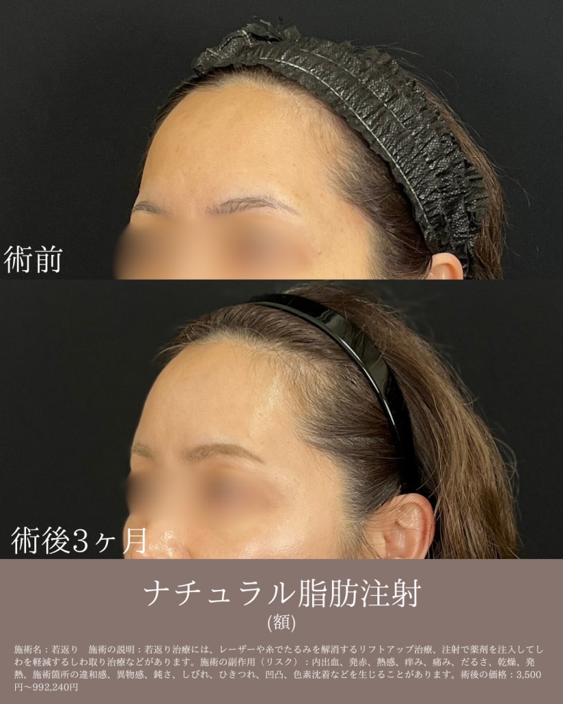 - ナチュラル脂肪注入(額):118,400円+麻酔代19,800円=138,200円