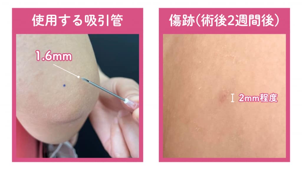 これらは、脂肪を「採取した部位(吸引部)」と「注入した部位(注入部)」の両方に発生します。