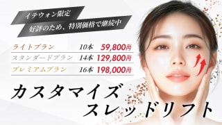 糸リフト 【特別価格で継続中】イテウォンの糸リフトが最大75,560円OFF!医師監修「カスタマイズスレッドリフト」 お得な糸リフトなら【カスタマイズスレッドリフト】で!有名医師監修だから、初心者の方も定期メンテナンスの方も安心。気になるほうれい線やもたつきを解消し、シャープな小顔へ。まずはプラン詳細をチェック! 2025.07.31 糸リフト