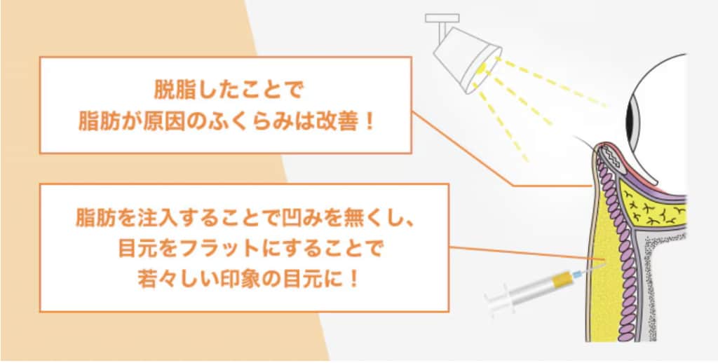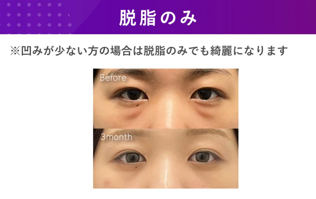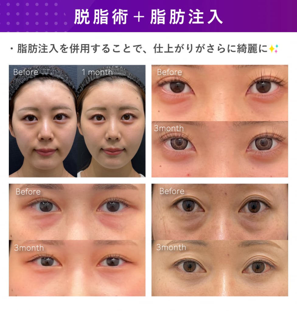 ・目の下の切らないクマたるみ取り(脱脂術)+脂肪注入