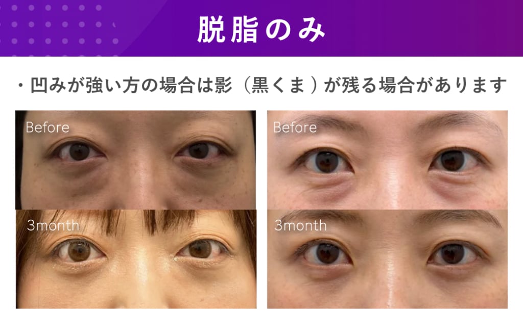 ・目の下の切らないクマたるみ取り(脱脂術)+脂肪注入