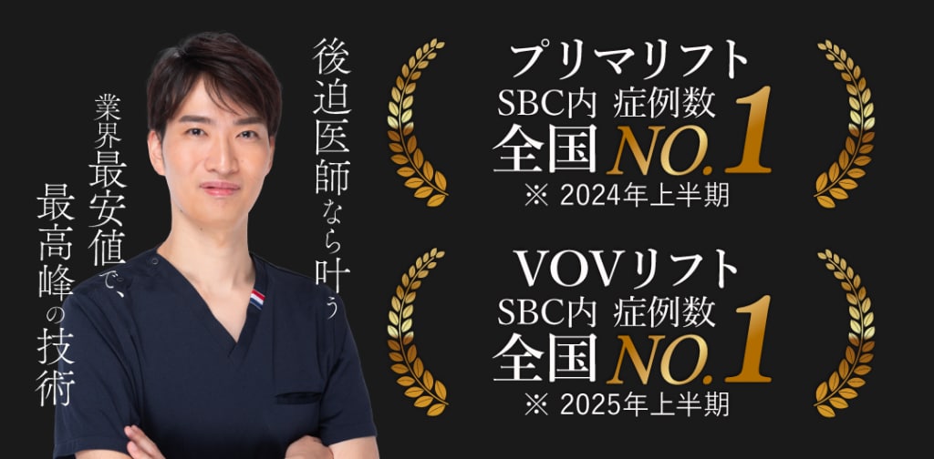 糸リフト(プリマ・VOV)症例数全国1位を獲得した後迫医師なら経験を元に、お客様一人ひとりにあった的確なデザイン・施術が可能です