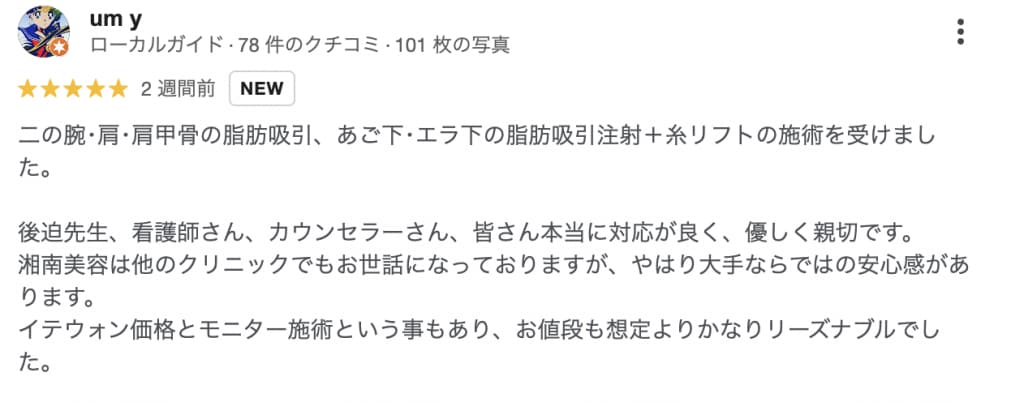 イテウォン恵比寿院 Google口コミ★4.6(2025.12現在)