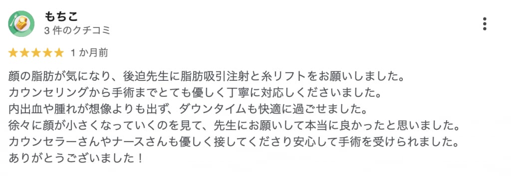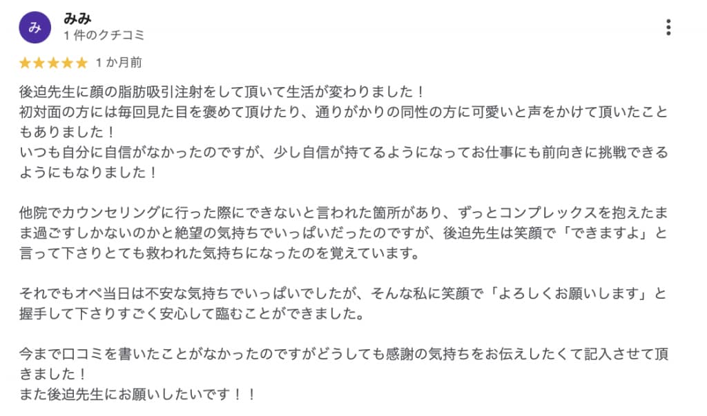 後迫医師の人柄や術後の経過についてもたくさん嬉しいお言葉をいただいております!