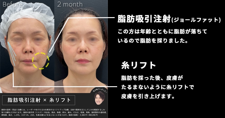 A. はい。糸リフトや脂肪注入・ヒアルロン酸注入を組み合わせることで、