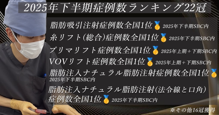 糸リフト(VOVリフト)症例数全国1位※2025年上半期+下半期SBC内