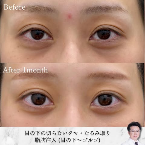 脱脂のみでは改善しきれない「凹み」や「影」も、 脂肪注入を併用することで、より自然で若々しい目元に仕上がります。