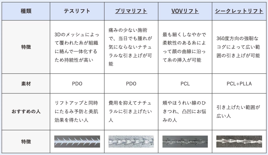 ・通常の糸よりも組織と接する面積が大きいため、他の糸に比べてより多くのコラーゲンやエラスチンの生成促進効果がのぞめる