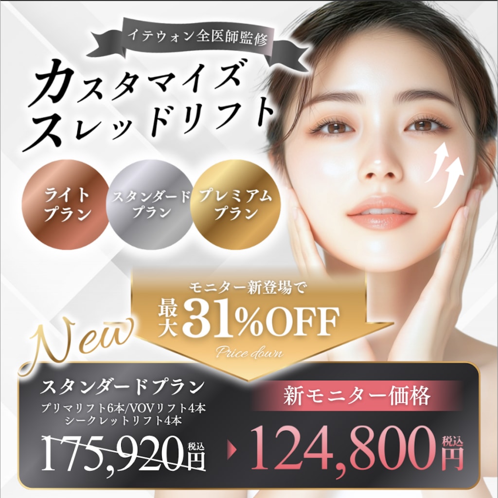 イテウォンビューティークリニックで圧倒的な人気を誇った“カスタマイズスレッドリフト“が、お客様からの熱いご要望にお応えして、ついに好評のため、モニター価格で新登場‼️