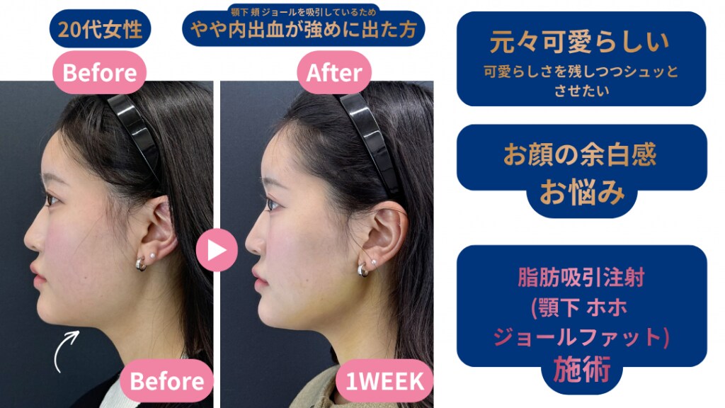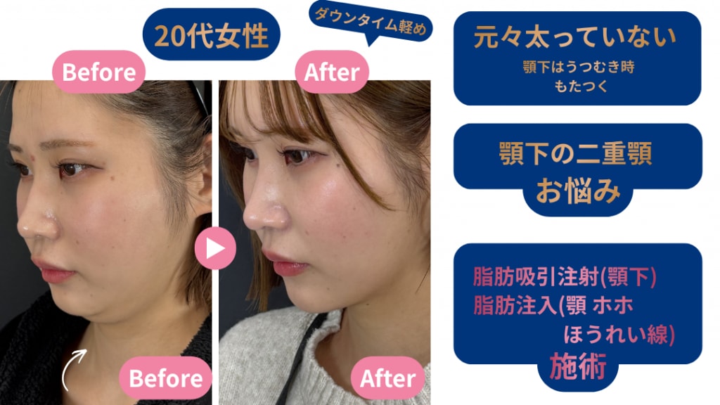 こちらの方は顎下+ジョールファット+頬の脂肪吸引注射を行いました。